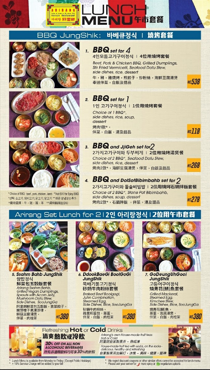 From a reviewer’s perspective, the menu at Arirang Korean Restaurant in Wan Chai impresses with its range of options for gatherings of all sizes, particularly through its Festive Season Party Menus-including Party Menu - over 12 persons, Party Menu for 2, Party Menu 4, and Party Menu 6-that cater to different group occasions with a variety of dishes to share. While detailed pricing for these set menus isn’t readily available online, the focus on group-friendly formats suggests generous value for celebrations and larger meals. Beyond these party offerings, the broader menu features classic Korean favourites and sushi selections with clear individual prices, such as K4 Bi Bim Bap - $15.95, K8 Bul Go Gi - $23.95, K9 L.A. Gal Bi - $26.95, and P2 Salmon Poke - $18.95, alongside other appetisers, noodles, and combi options like P1 Simple Tray (36 pcs) - $38.95 and P3 Together Tray (71 pcs) - $77.45. The variety and pricing balance between individual dishes and shared menus make it suitable for everything from casual dinners to festive group feasts.